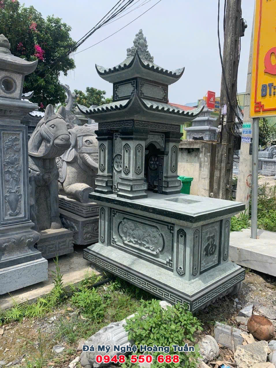 Mộ đá có mái che là mẫu mộ có thiết kế tinh xảo với nhiều mẫu mã độc đáo, nguyên liệu đa dạng phù hợp với các công trình tâm linh như lăng mộ đá, công viên nghĩa trang… Chính vì những yếu tố đó mà mẫu mộ mái che được rất nhiều khách hàng lựa chọn. Đá mỹ nghệ Hoàng Tuấn là đơn vị chuyên thiết kế, cung cấp các mẫu mộ đá mái đá chất lượng tại Ninh Bình. Liên hệ: 0948.550.688 để được tư vấn và báo giá.